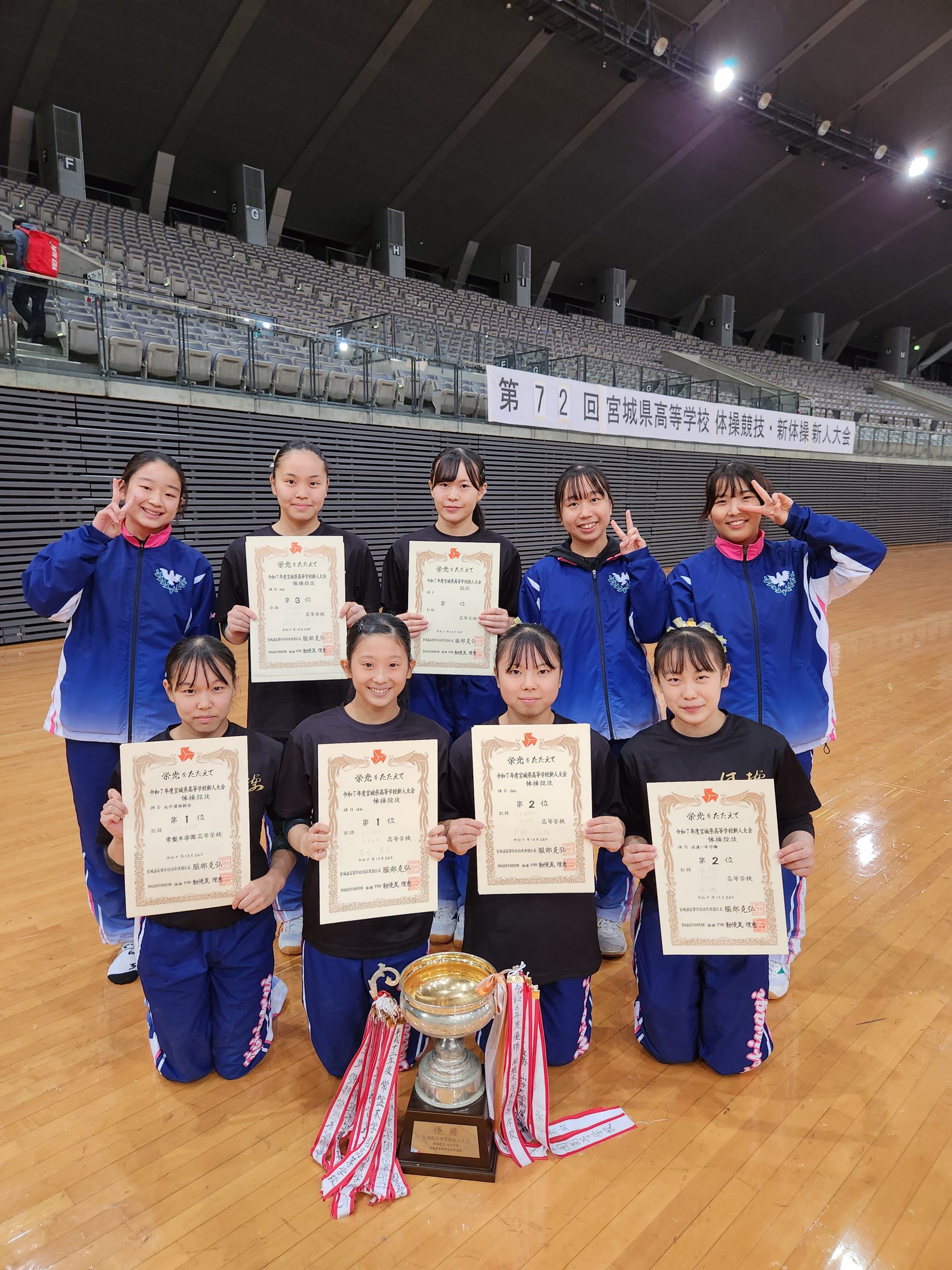 10月26日(日)グランディで行われた宮城県新人大会体操競技で器械体操部&新体操部が団体優勝をしました。