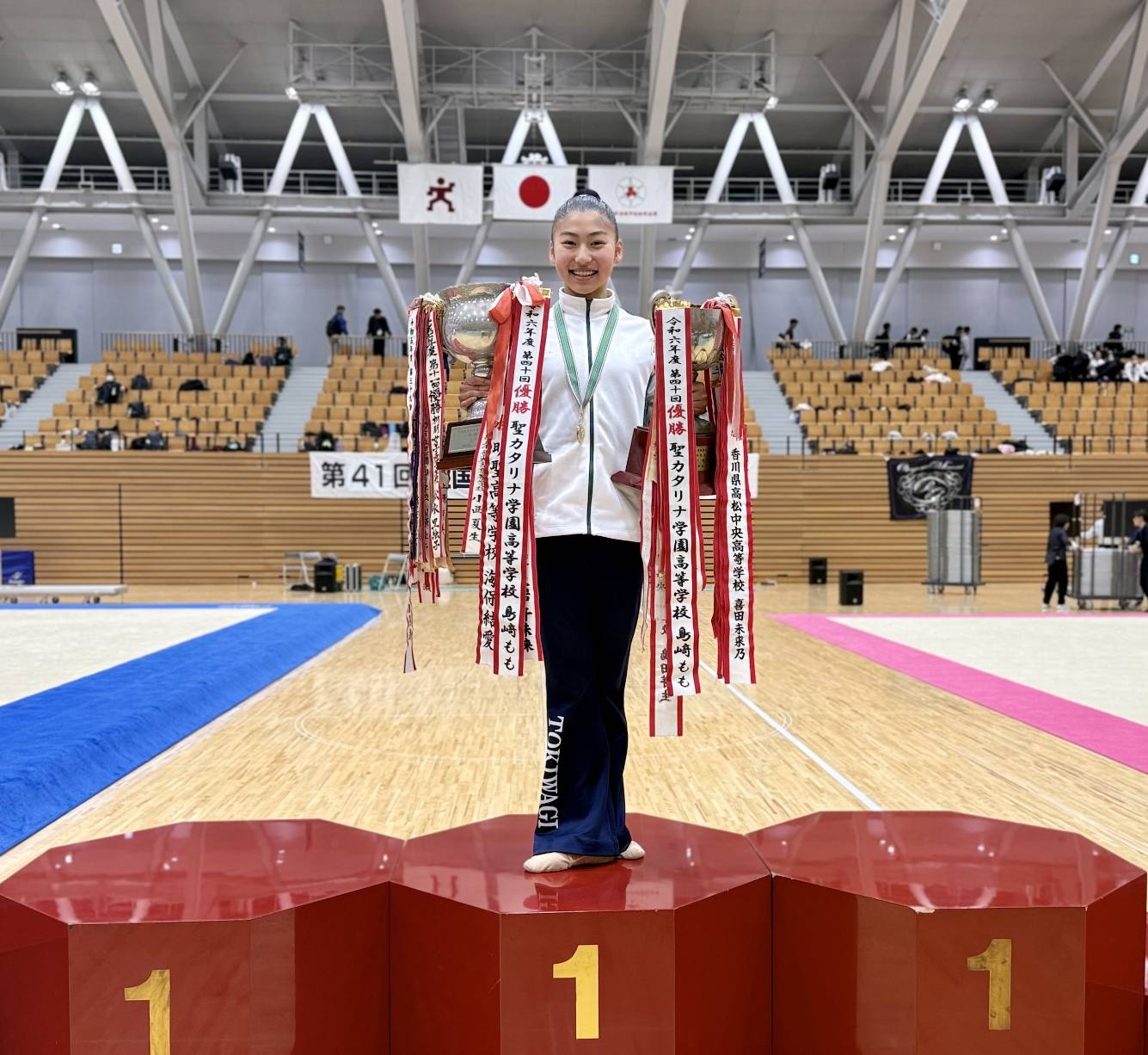 ボール・クラブ・リボンで1位、フープで2位になり、高校生の大会で初めての全国優勝です。