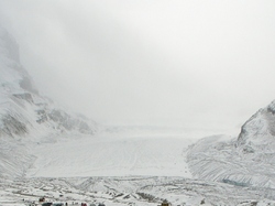 右:クロウフット氷河です。氷が河になって流れて来るんですよ!なかなか見られません。しかし・・・寒いっ!(当然ですね)
