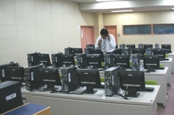 TOEICなのにコンピュータを・・・そう、これはTOEICの新しいタイプのテストである、TOEIC Speaking & Writing Tests(SW Tests)のセッティング風景なのです。常盤木学園が、このSW Testsの試験会場校に予定されています。